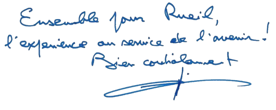 J’ai l’expérience de la gestion municipale, des grands dossiers publics, des relations avec les services de l’État pour défendre les intérêts des Rueillois.